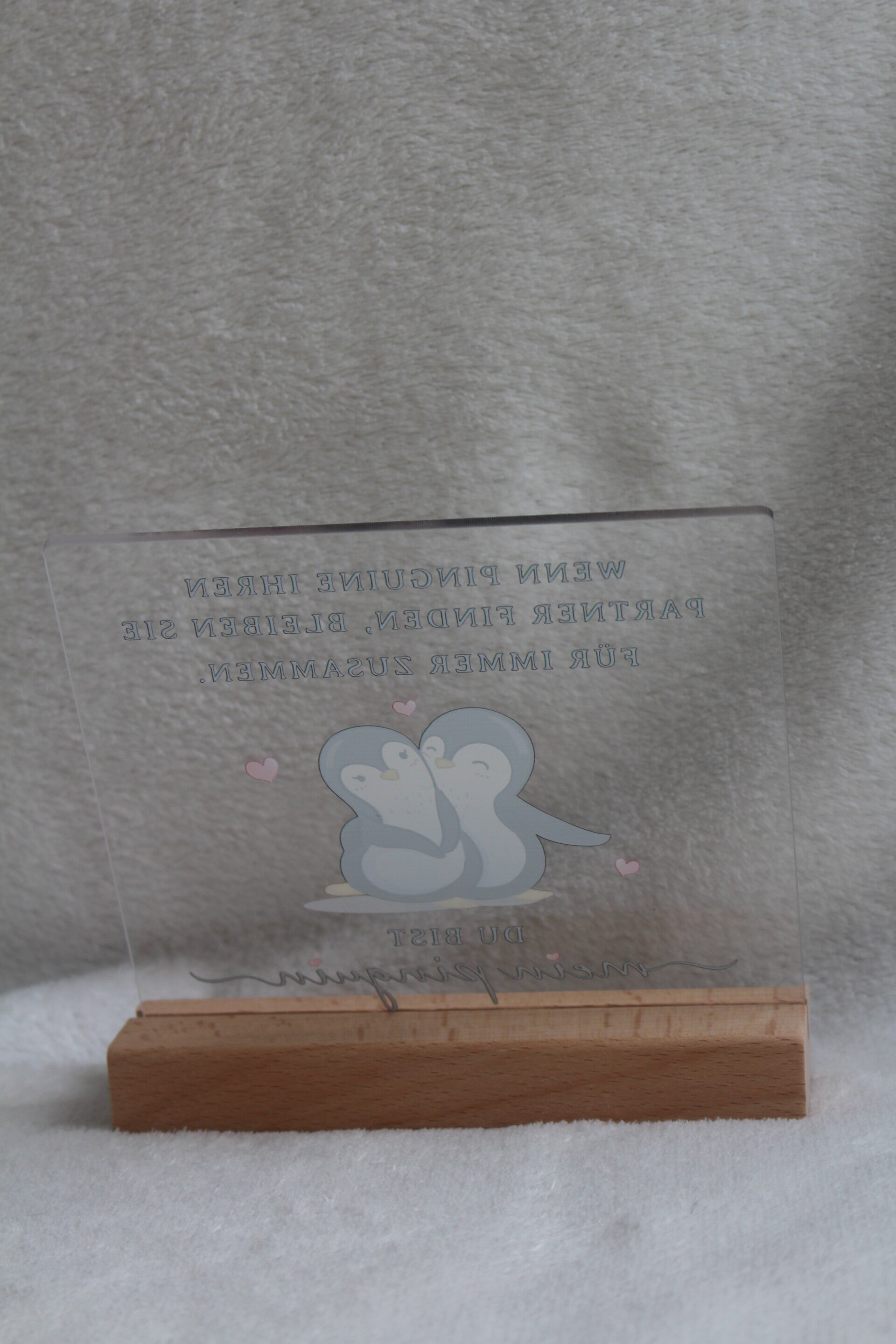 Unser neues Mr.Pingu Acyrl ist das perfekte Geschenk für jede/n Partner/in. Durch den Satz "Wenn Pinguine ihren Partner finden, bleiben sie für immer zusammen. Du bist mein Pinguin" kann man seine tiefe Zuneigung zeigen. Das Acryl steht auf einem kleinem Holzsockel